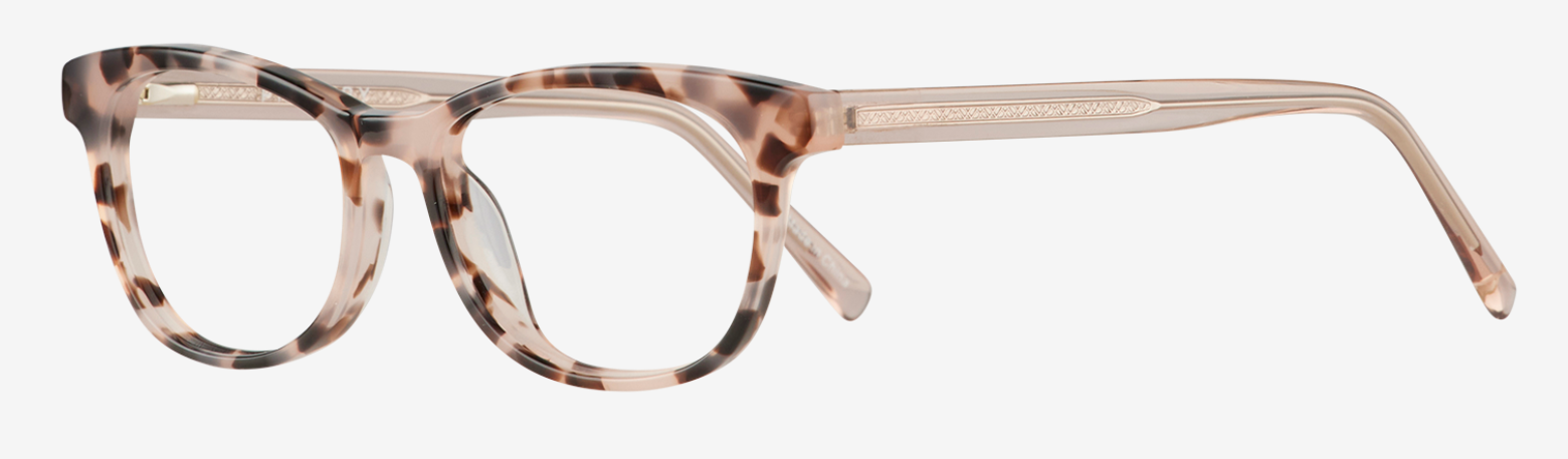 Primary 1015 delivers warm, sunlit sophistication with its rose-and-brown tortoiseshell palette and soft oval shape. Crafted from semi-translucent plastic, the design is infused with a summer glow, revealing an intricately etched core wire for a touch of hidden charm. Also available in tort/lilac.